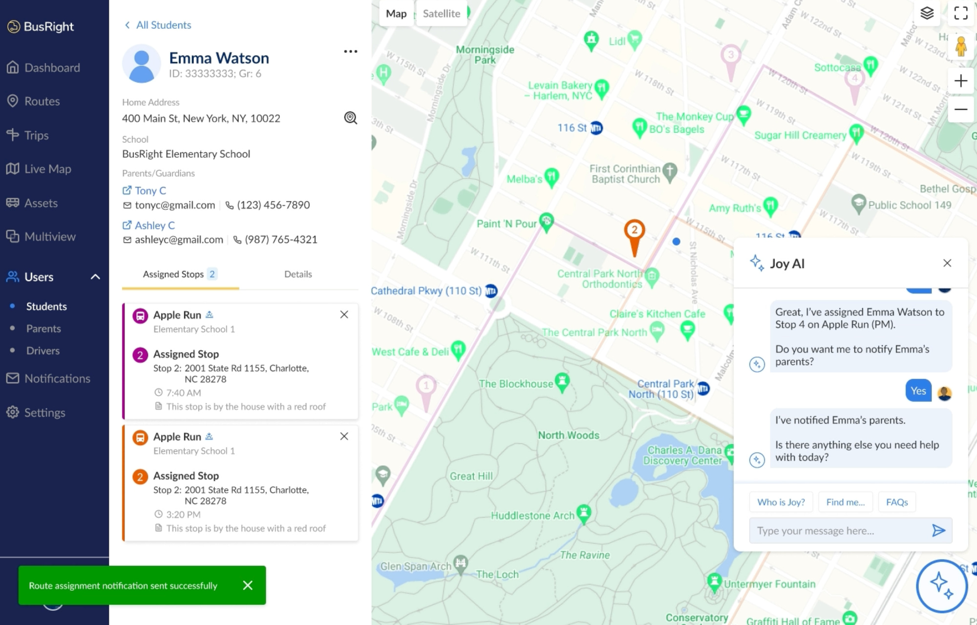 BusRight unifies a fragmented system, giving transportation teams the tools, visibility, and confidence they need to run their operation without the constant stress. Routing, communication, driver support, and real-time tracking all work together, turning what used to feel overwhelming into something manageable. Parents get real-time location of their child’s school bus, whether students safely badged onto the bus, and more.