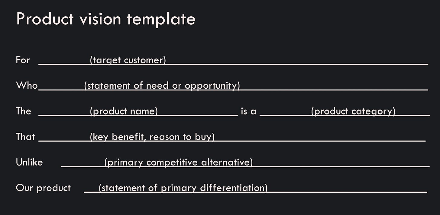 Fill in the product vision template to be specific about what you’re solving, who you’re solving it for and why you’re different.
